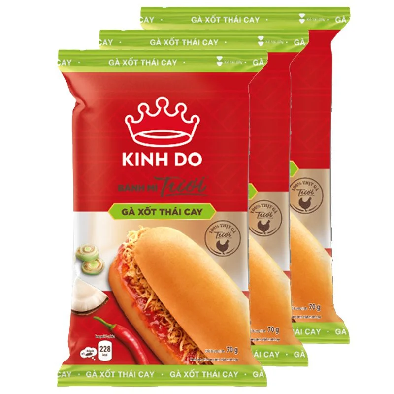 Bánh mì tươi Kinh Đô mang đến những chiếc bánh mì tươi ngon được sản xuất trên công nghệ hiện đại, an toàn cho người dùng. Bánh mỳ tươi Kinh Đô gà xốt Thái Cay mang đến lớp bánh mềm mịn cùng phần sốt cay thơm ngon, mang đến nguồn năng lượng dồi dào cho ngày dài hoạt động.